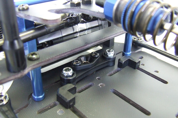 【主要装備】■ブラックFRP製シャーシ ■カーボンロアサスアーム(インディペンデントサス)■0°, 5°の2種類のアッパーアームマウント ■デルリン削り出しピボットボール ■オイルダンパー(ピッチング) ■チューブダンパー(ロール制御) ■アルミ削り出しモーターマウント(R)※左側は高剛性樹脂製 ■ボールデフ ■フルボールベアリング