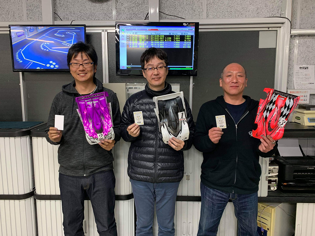 <左>2位 清水くん(予選2位決勝2位)、<中>優勝 大戎さん(TQ&WIN)、<右>3位 伏見さん(予選3位決勝3位)