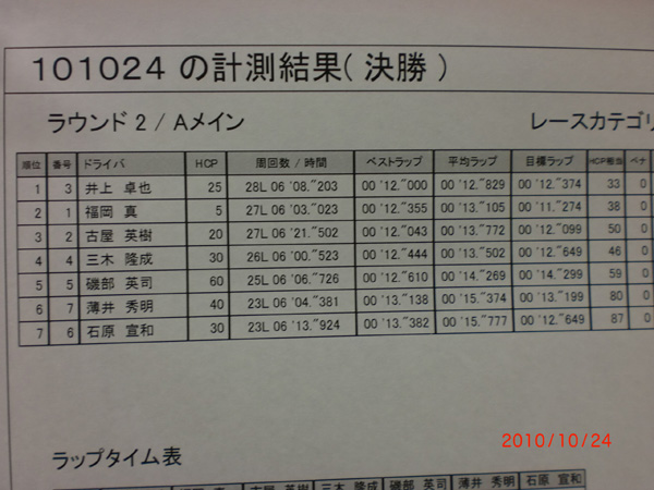 ちなみに決勝2回目は1回目のレース結果の逆グリッドらしい…。と言うことは僕チン大分前ヤン。しかも途中リタイヤだったので電池にもアドバンテージがあります。フフッ。