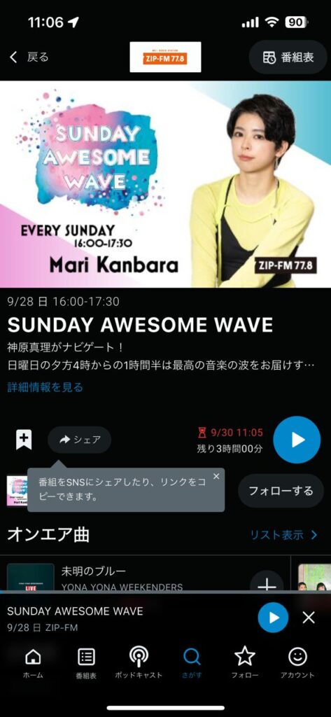 ZIP FMのSUNDAY AWESOME WAVEの9月28日放送分です。