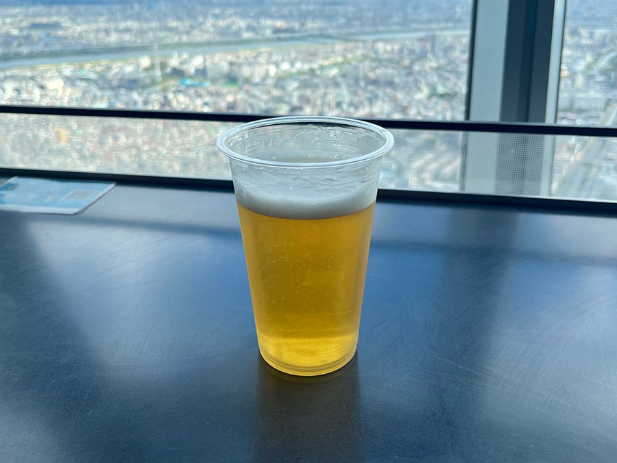 高いところで飲む高いビールはとても美味しかったです!!(写真は一口飲んだ後の)