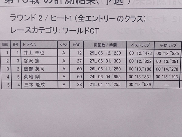 車はホント調子良かったんです…。予選1回目は2位だった。